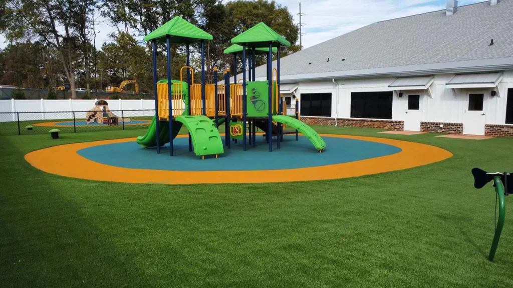 SYNPour from SYNLawn Alabama is a cutting-edge pour-in-place surfacing system designed for playgrounds and recreational areas in Birmingham, AL. It offers an exceptional combination of safety, durability, and visual appeal, making it an ideal choice for kid-friendly spaces. It is crafted to provide a cushioned, impact-absorbing surface that minimizes injuries during play. With its shock-absorbing properties, SYNPour pour-in-place surfacing meets many safety standards, offering parents and caretakers greater peace of mind. It’s especially suited for playgrounds, parks, and recreational facilities where kids can run, jump, and climb freely.